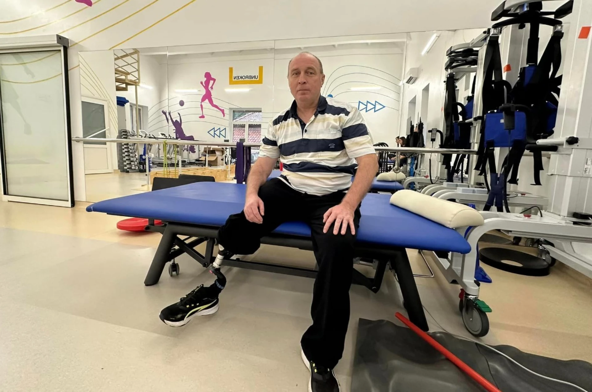 «Головною метою реабілітації було навчити пацієнта навантажувати уражену ногу. Але пересування на милицях ускладнювала поранена права рука. Йому важко було на неї спиратися. Тому разом із ерготерапевтами ми інтенсивно працювали саме в цьому напрямку, внаслідок чого його сила в руках значно збільшилася, і тепер йому вже не складає труднощів опиратися на поранену руку», — розповідає фізичний терапевт Центру UNBROKEN Павло Пясецький.