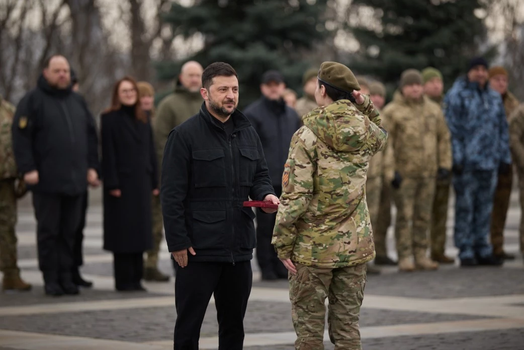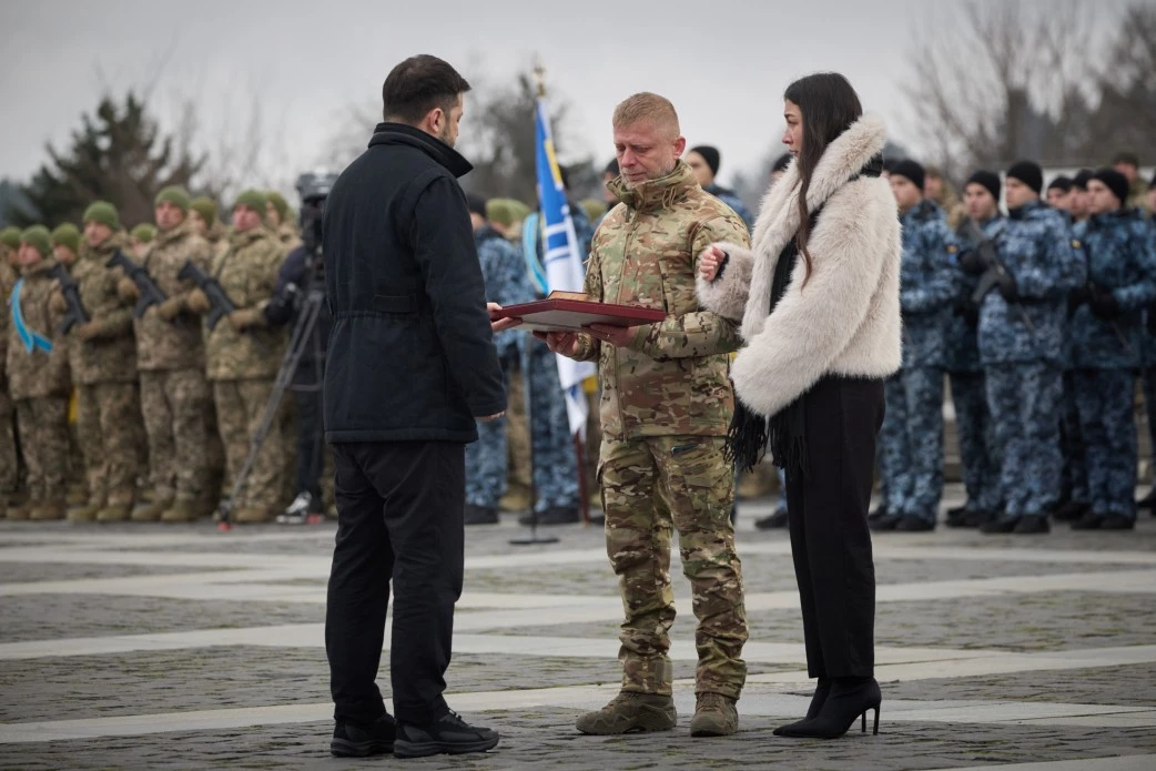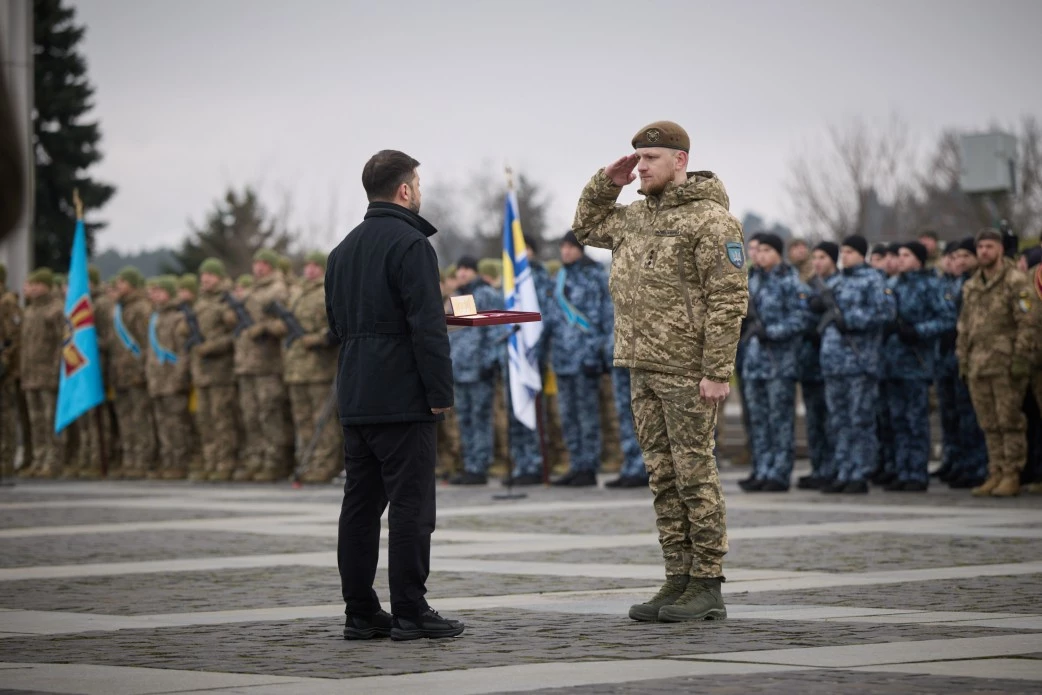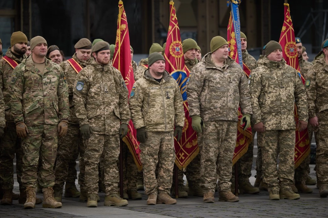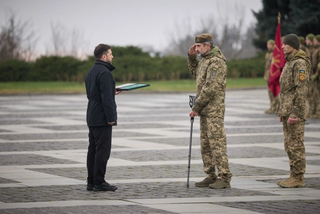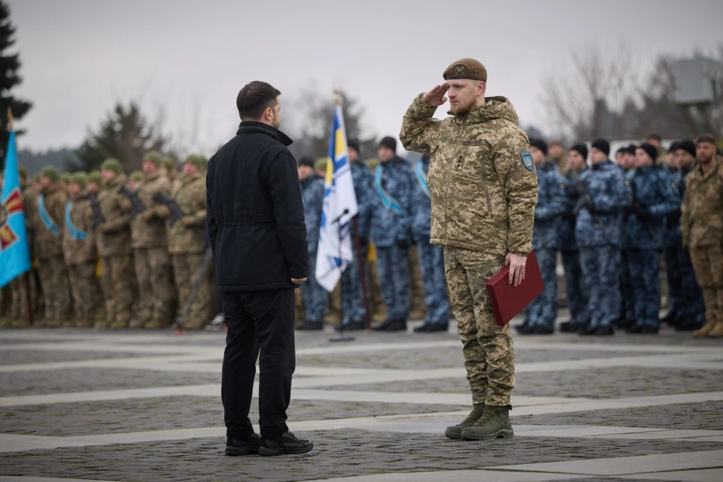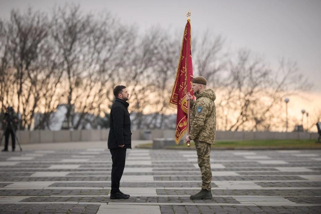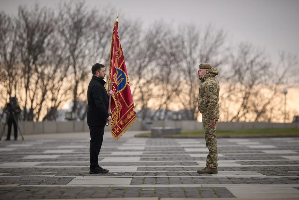 Президент Володимир Зеленський привітав воїнів із Днем Збройних сил України та відзначив їх державними нагородами, а також вручив командирам підрозділів бойові прапори, стрічки почесної відзнаки «За мужність і відвагу» та стрічку почесного найменування.