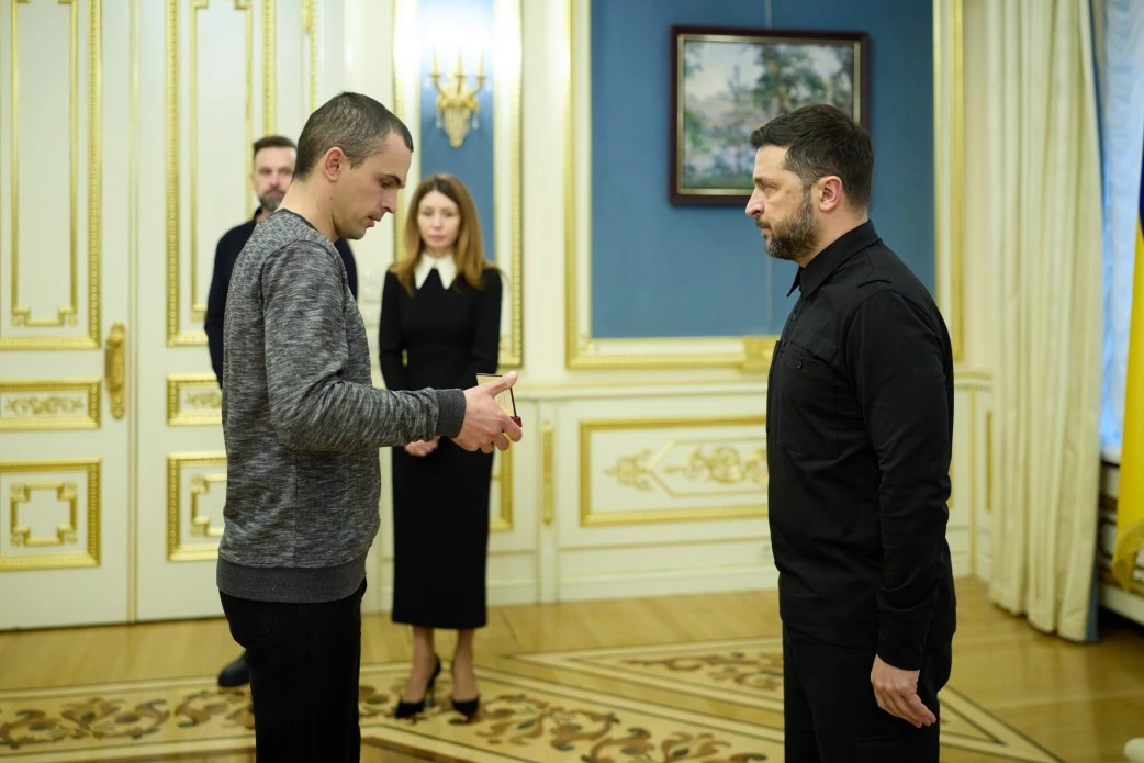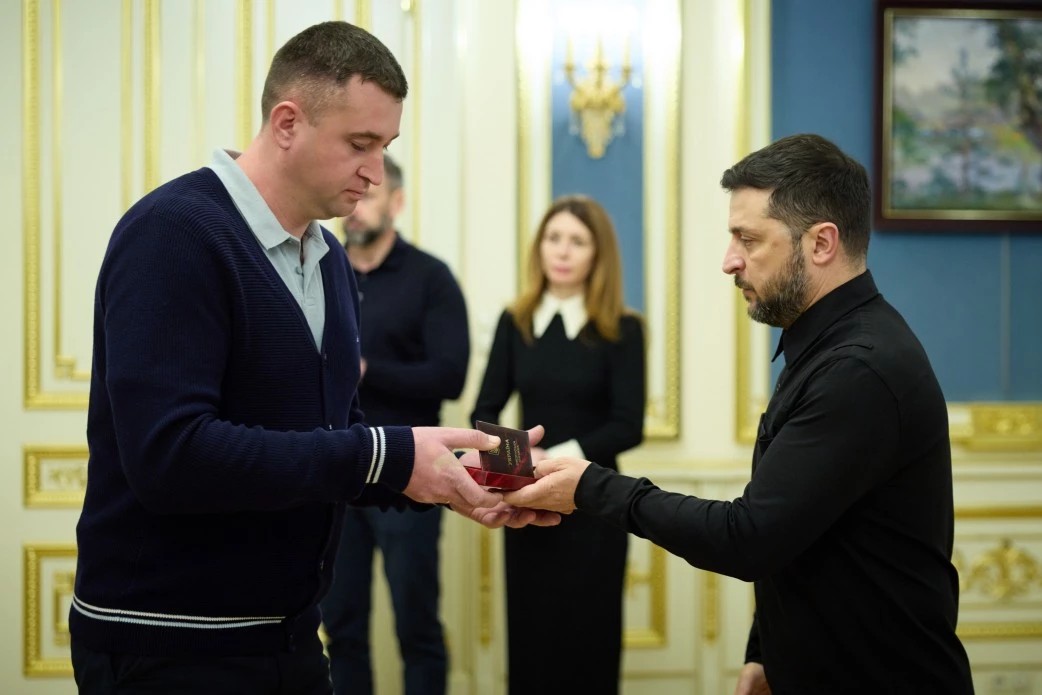 Глава держави вручив ордени «За заслуги» ІІІ ступеня електрослюсарю «Чернігівобленерго» Артуру Оболенському, який попри обстріли ворожими БпЛА та поранення продовжив ліквідацію пошкоджень повітряних електроліній і надав допомогу пораненим колегам, і начальнику Сумської лінійної дільниці «Укренерго» Сергію Титаренку, завдяки якому вдалося забезпечити відновлення другого джерела живлення для Харківської та Донецької областей.